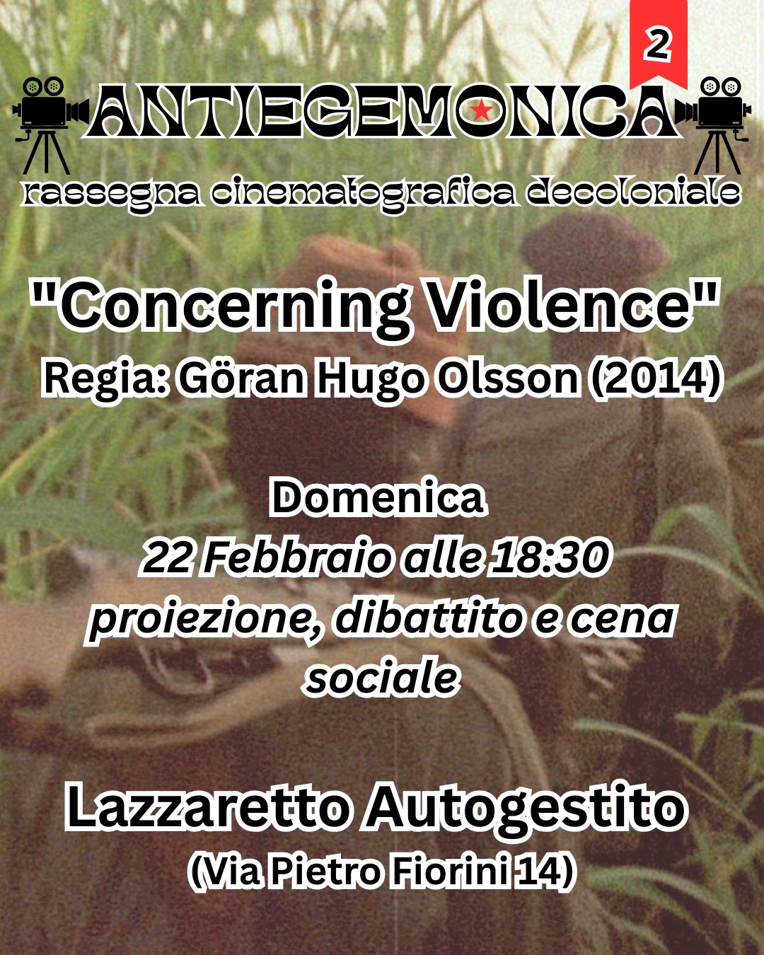 🎬 Proietteremo CONCERNING VIOLENCE (2014), diretto da Olsson. Una narrazione visiva costruita a partire da materiali d’archivio di documentari svedesi girati tra il 1966 e il 1987. Il film ripercorre alcuni dei momenti più intensi delle lotte di liberazione africane dal dominio coloniale, intrecciando le immagini storiche con il pensiero di Frantz Fanon tratto dal suo libro del 1961 I dannati della terra.