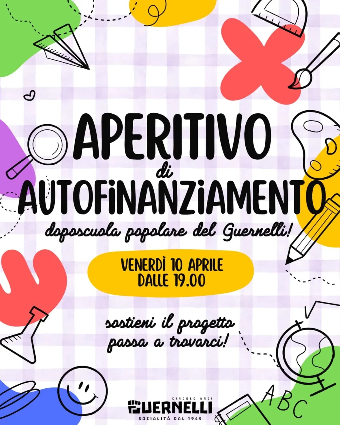 Venerdì 10 aprile, dalle 19, aperitivo di autofinanziamento per sostenere il Doposcuola Popolare del Guernelli!