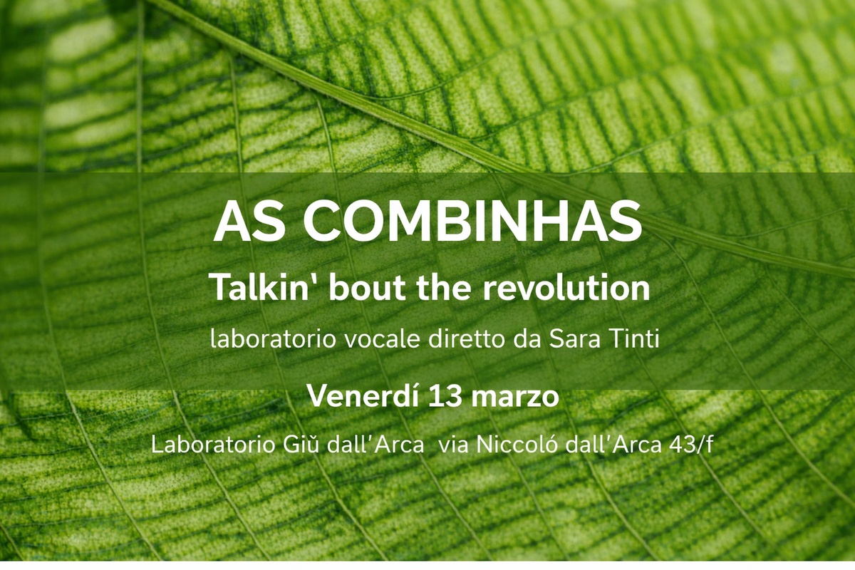 AS COMBINHAS è un ensemble vocale formato da studentesse e studenti di canto, diretto da Sara Tinti, un laboratorio che si dedica alla pratica del cantare e creare insieme, affrontando un repertorio variegato. Per la prima volta presenteranno il frutto del loro lavoro al Giù Dall’Arca.