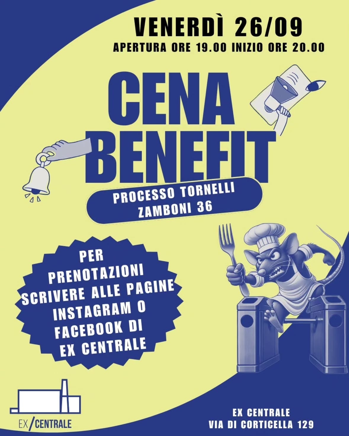 CENA BENEFIT per gli studenti che nel 2017 si opposero alla presenza dei tornelli in via Zamboni 36.