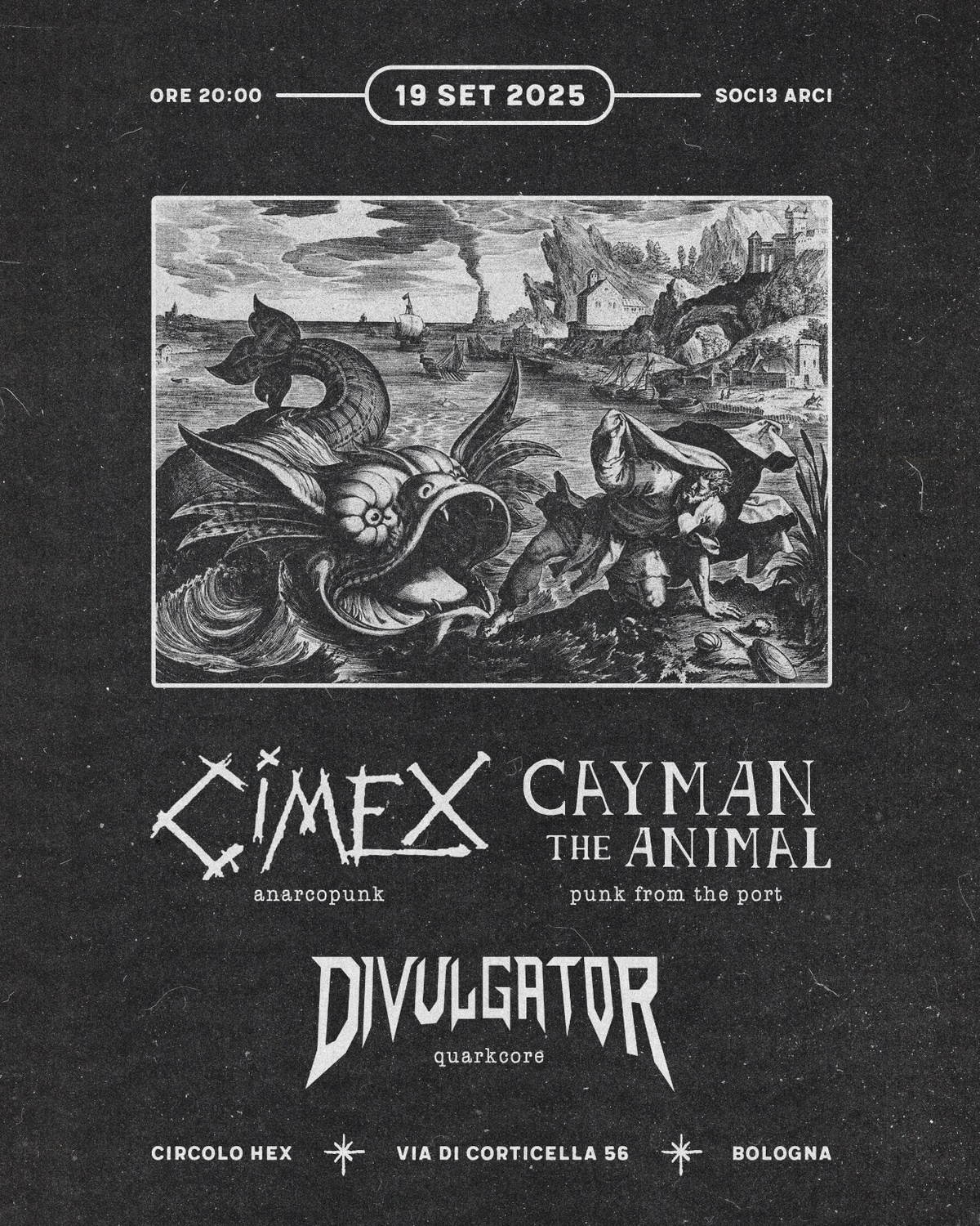 I Cayman The Animal nascono a Roma nel 2010, e piace loro fare il punk mischiato con il post qualcosa. Sono stati accostati a gruppi talmente diversi tra loro che manco si ricordano. Nell'ambiente del music business sono noti per essere stati gli inventori del concetto di "rimborso supplรฌ" (tot supplรฌ a seconda dei chilometri percorsi).