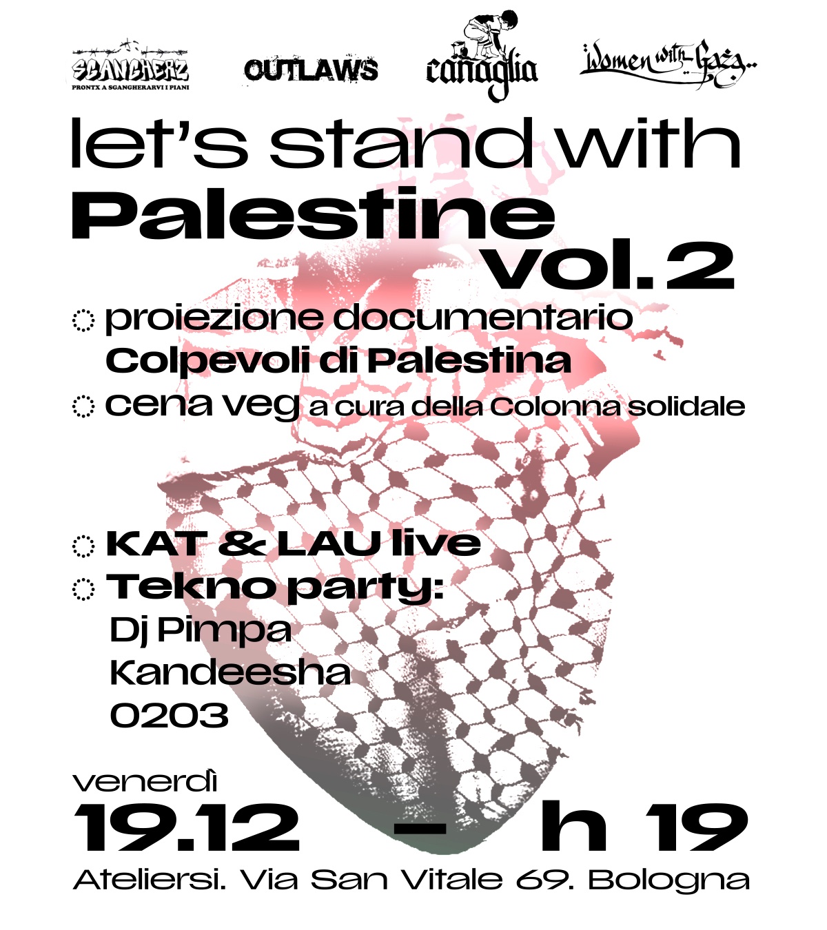 Come sempre tutto l'incasso della serata e delle autoproduzioni sarà destinato a supportare progetti in P4alestin4, e a persone e nuclei familiari palestinesi, con cui siamo in contatto diretto.