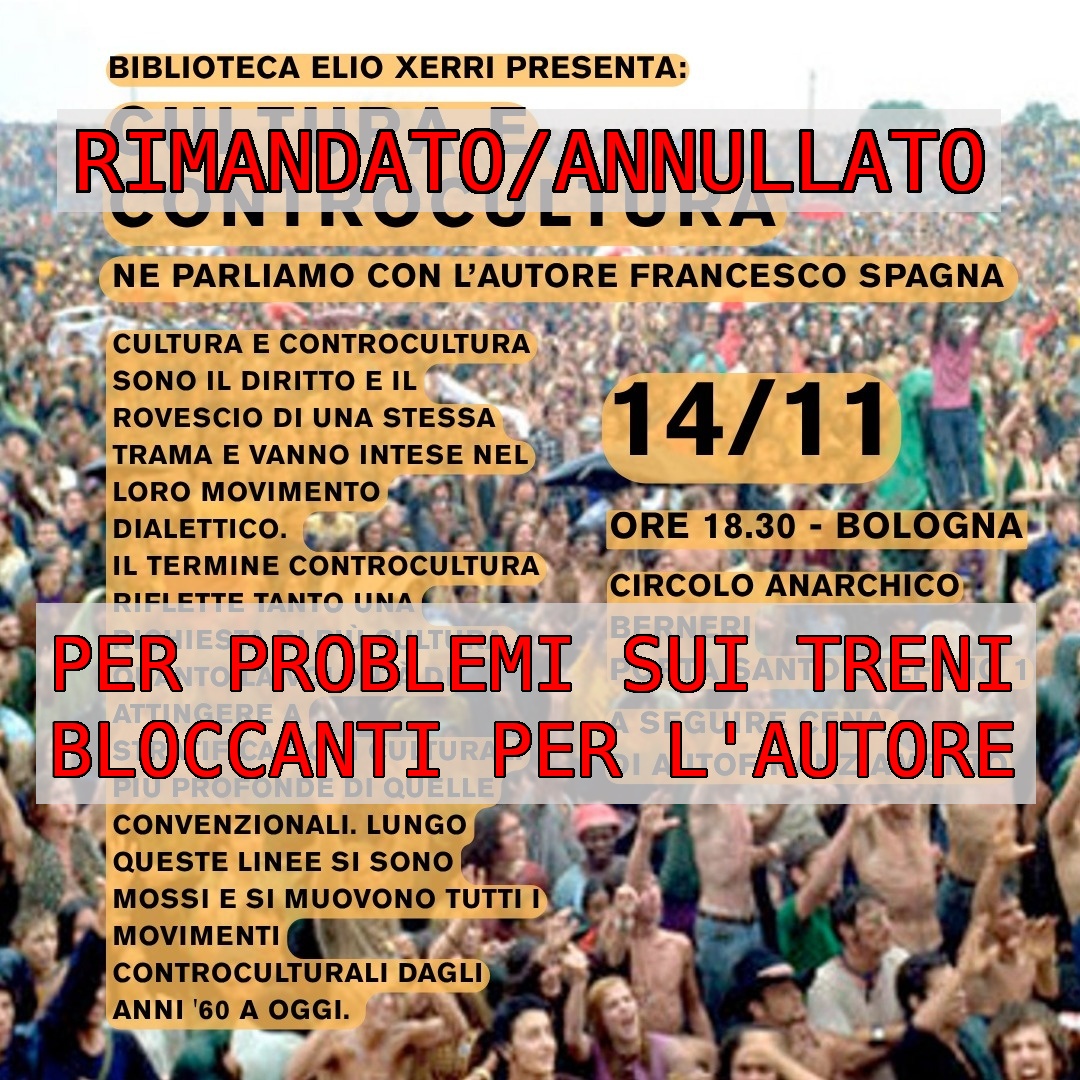ANNULLATO/RIMANDATO Presentazione di "Cultura e Controcultura"