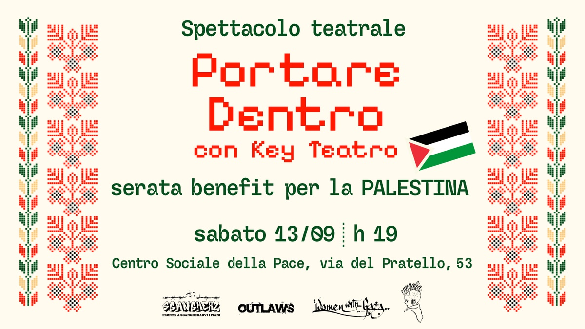La serata è organizzata da: sgangherz, Outlaws Crew, Women with Gaza, Serigrafia Canaglia.