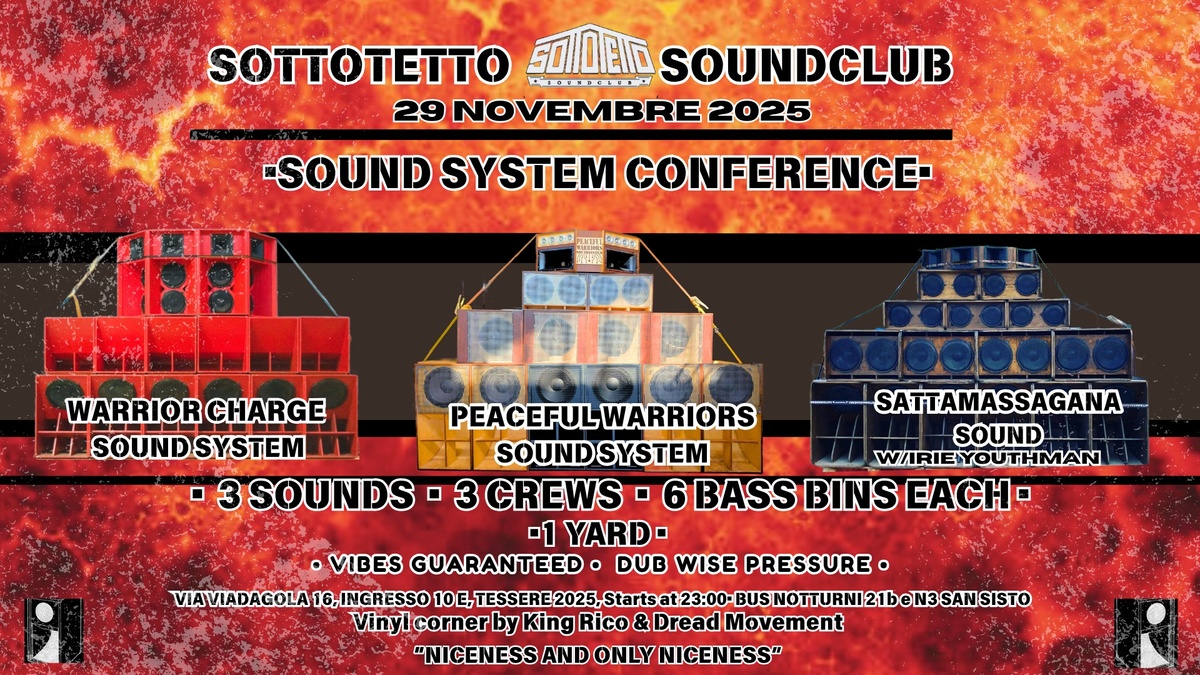 Tre sound system in una sola yard, 6 bassi a testa, pioggia di musica e specials, RUN COME