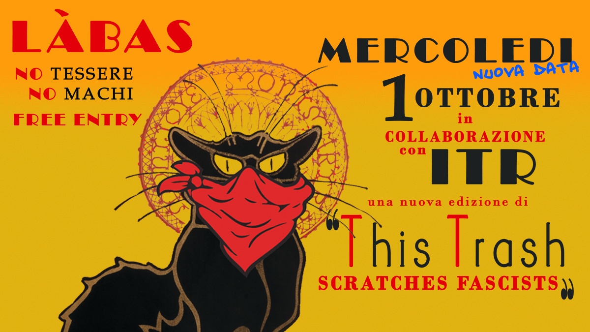 Làbas è uno spazio antifascista, antisessista e antirazzista. Se non ti rispecchi in questi valori ti consigliamo di restare a casa a studiare. No tessere. Free entry.
