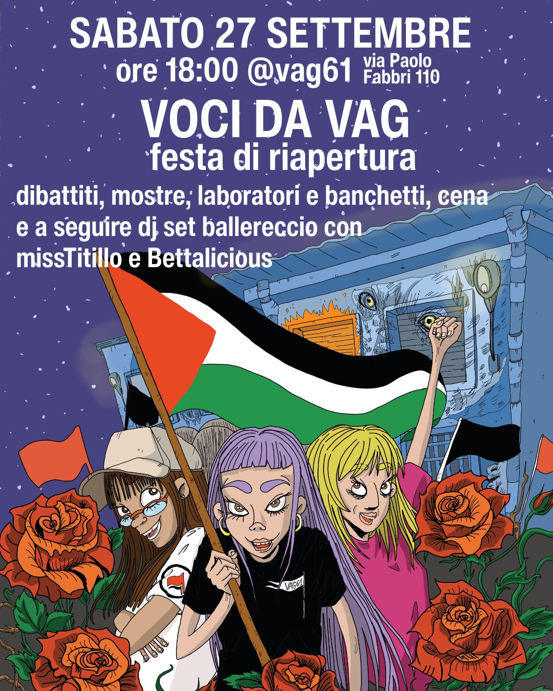 Sabato 27 settembre “Voci da Vag – Festa di riapertura”: dalle 18 dibattiti, mostre, laboratori e banchetti, cena a seguire dj set ballereccio con missTitillo e Bettalicious