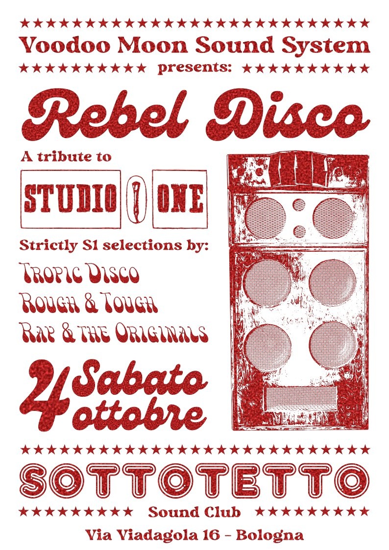 Una serata interamente dedicata al suono inconfondibile di Studio One, la leggendaria etichetta fondata da Sir Coxsone Dodd. Dal primo ska al rocksteady, dall’early reggae fino al roots e al DJ style: un tributo alla musica registrata a Brentford Road 13, Kingston, Jamaica, di qualsiasi stile ed epoca.