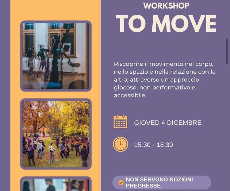 Durante questo pomeriggio avremo la possibilità di esplorare il nostro corpo, lo spazio fisico (e non) attorno a noi e la relazione con lx altrx in una chiave lontana dalla performatività, giocosa e sicura, adatta a chiunque voglia provare un approccio al movimento accessibile e attento alle necessità di ognun.